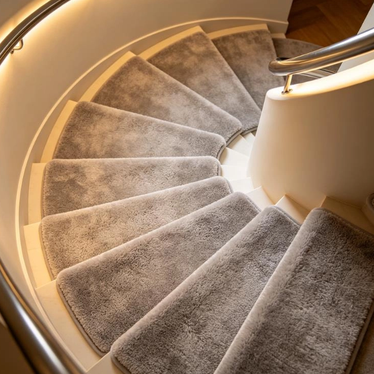In villas, hotels, clubs and commercial engineering spaces, irregular stairs, curved stairs, spiral stairs and special corner stairs are very common. Standard stair mats feature fixed sizes and single styles, which easily lead to poor fitting, edge warping, falling off and incomplete coverage, affecting overall decoration and causing hidden dangers in anti-slip, noise reduction and surface protection.